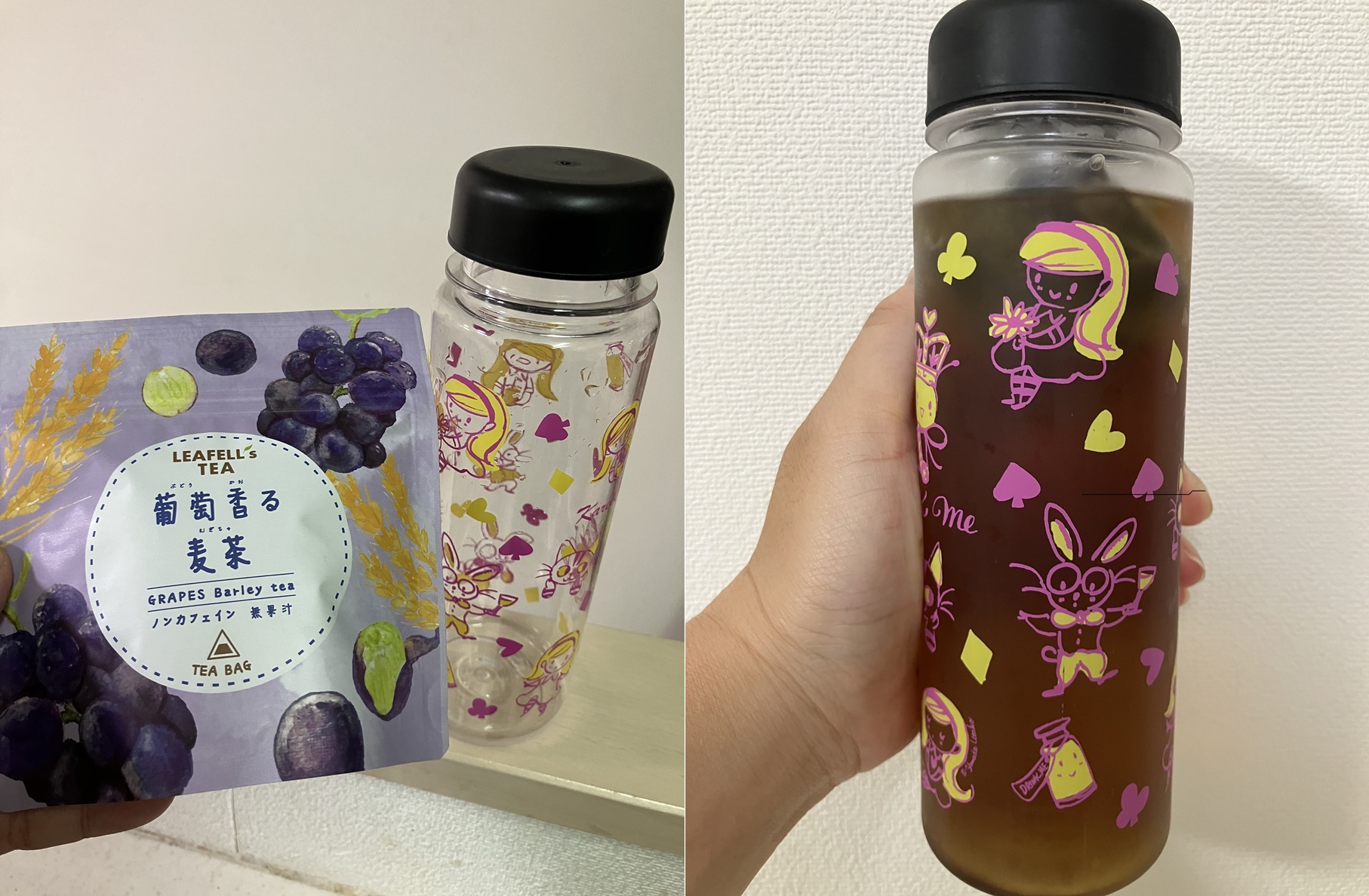 麦茶は1時間ぐらいで写真右↑の濃さでした。葡萄のかおりがして、でも味は麦茶なのでスッキリ