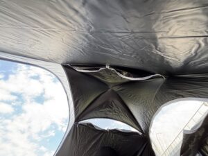さらに、テントの壁になる部分が二重のファスナーになっていて、網戸にして通気をすることもできます。風が通るとすごく快適!!