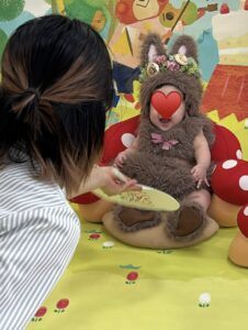 普段はきょとんとした表情が多い次女ですが、スタッフさんの手にかかると、あら不思議!ニコニコ笑顔がどんどん引き出されました。