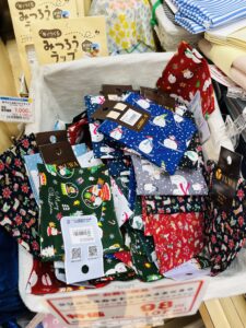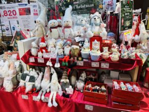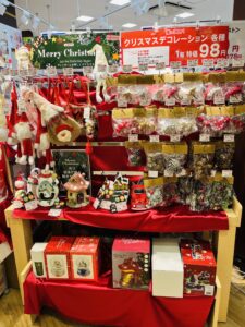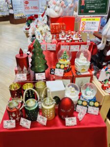 店頭にいろいろなクリスマスグッズが並んでいます![]()