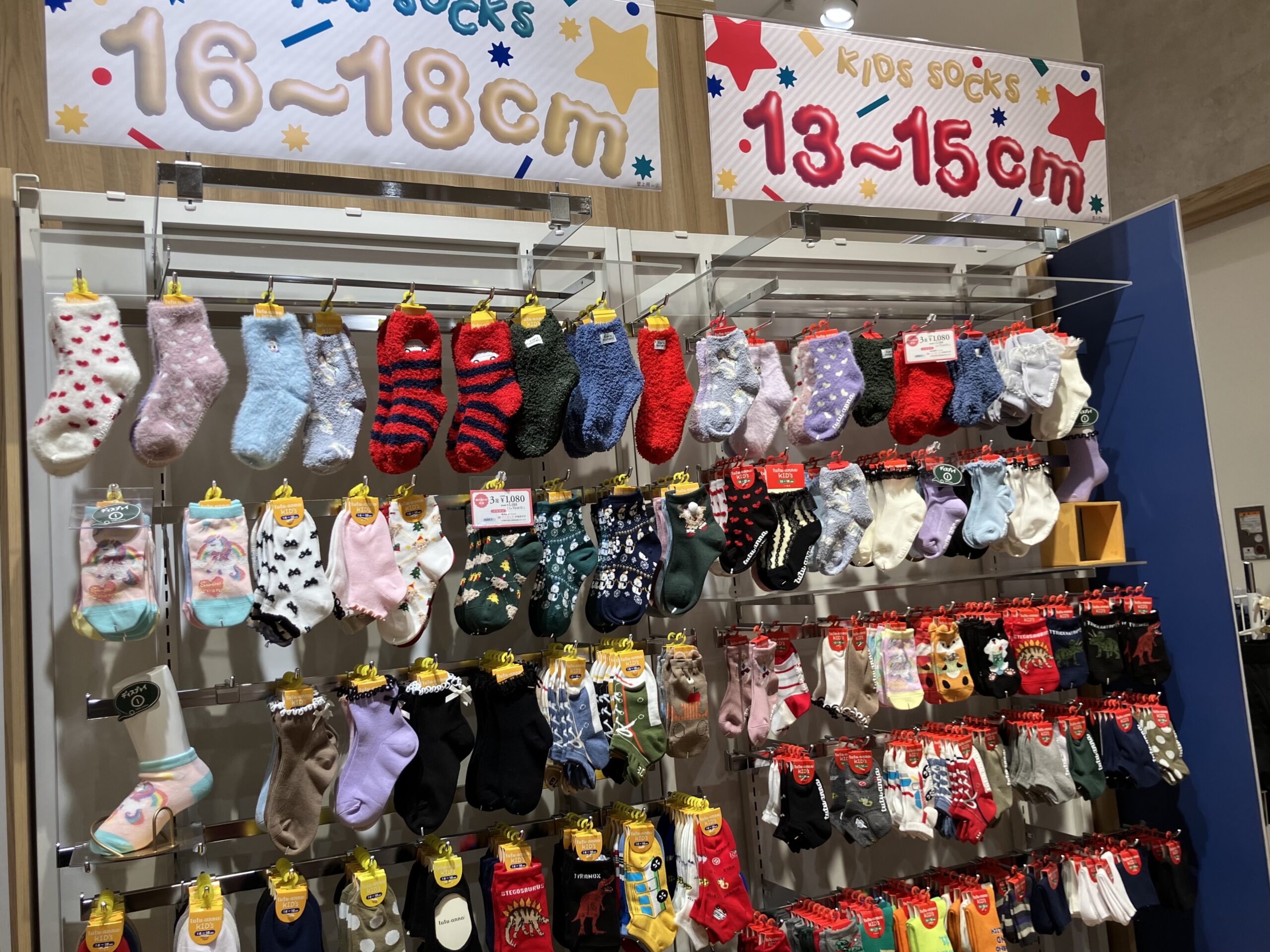 【3足1000円(税込1100円)】の値段が付いているものは、キッズ、メンズ、レディスどれでも組み合わせOK。親子でお揃いデザインの靴下もあります♪
