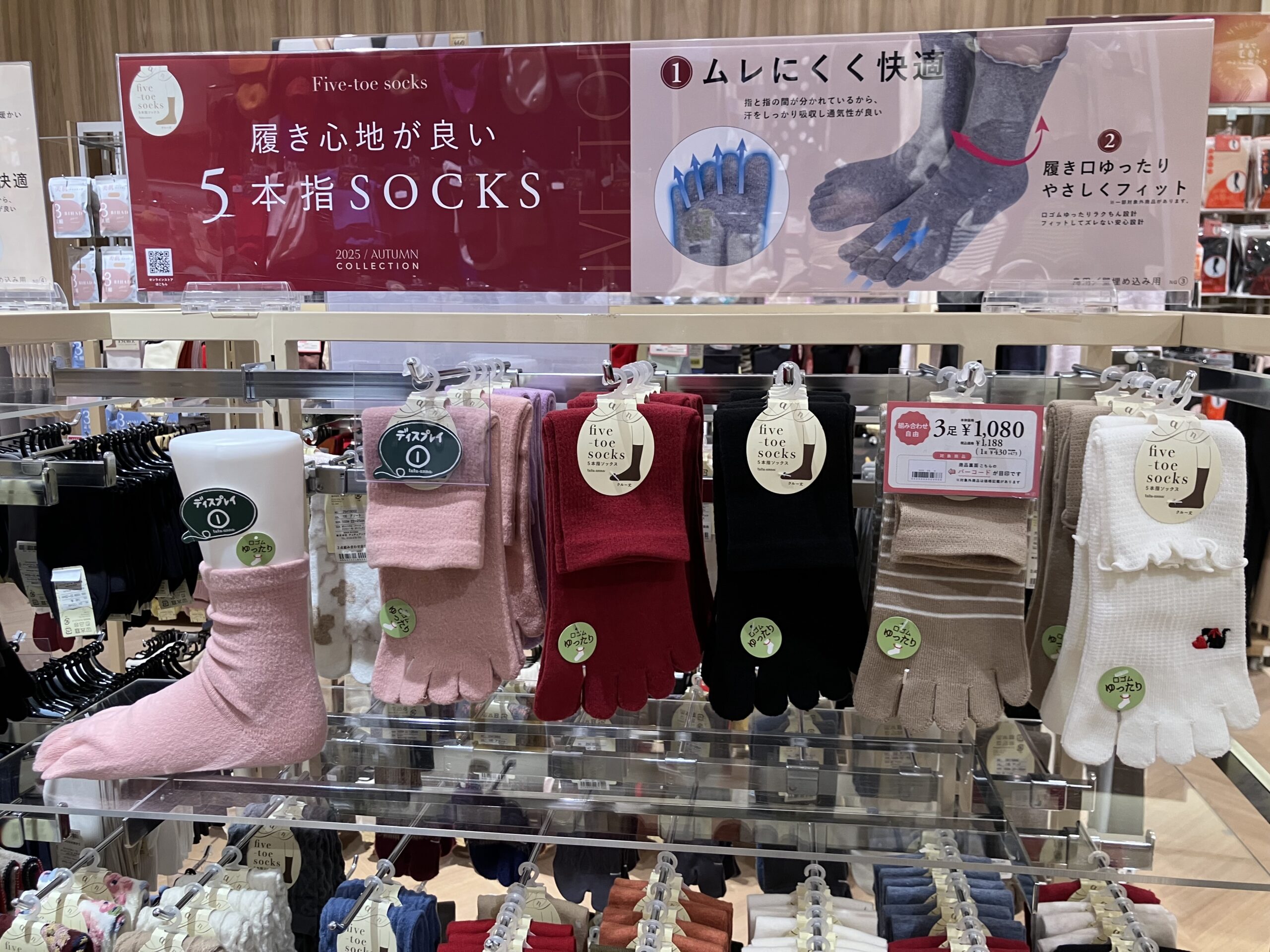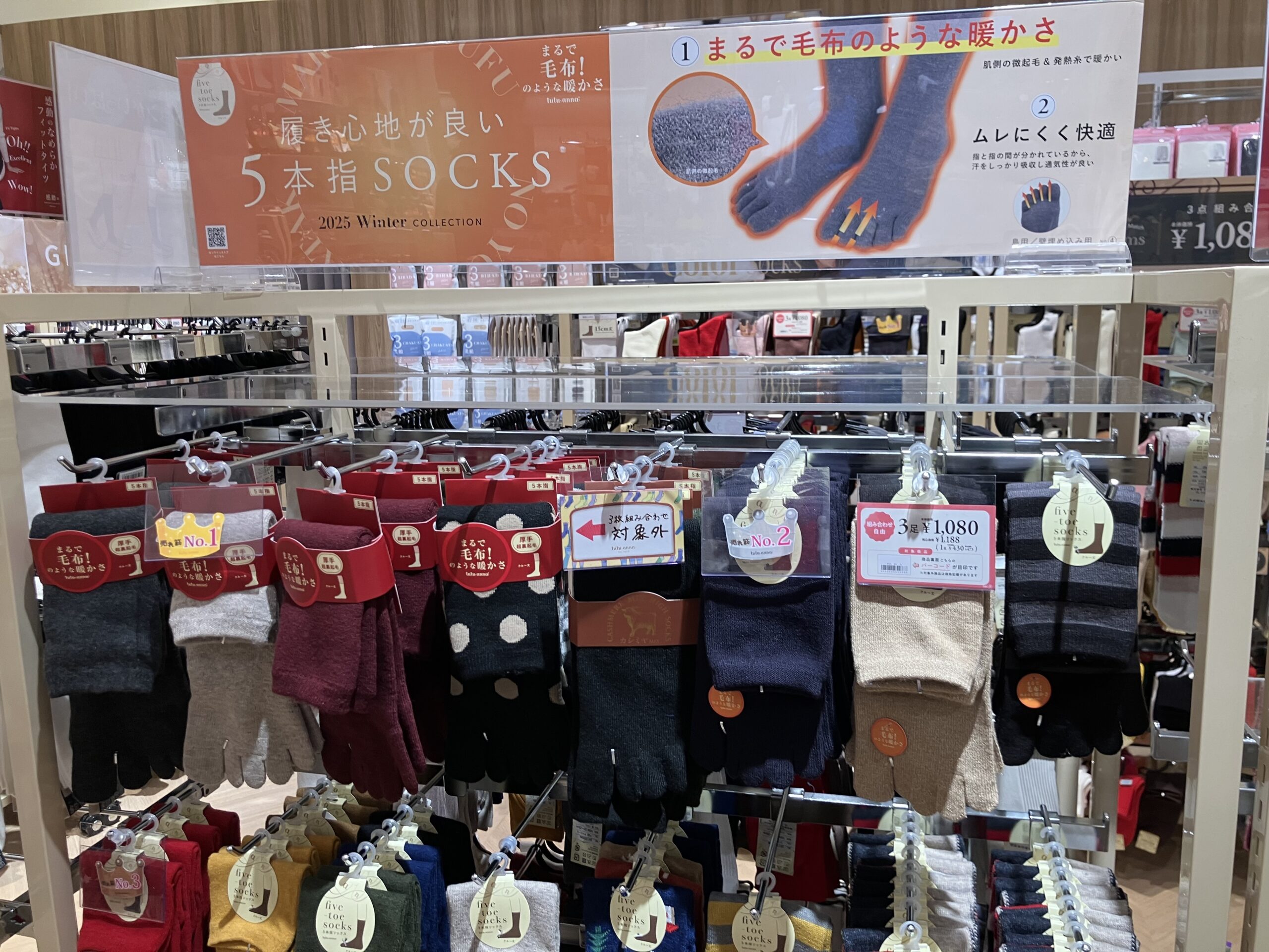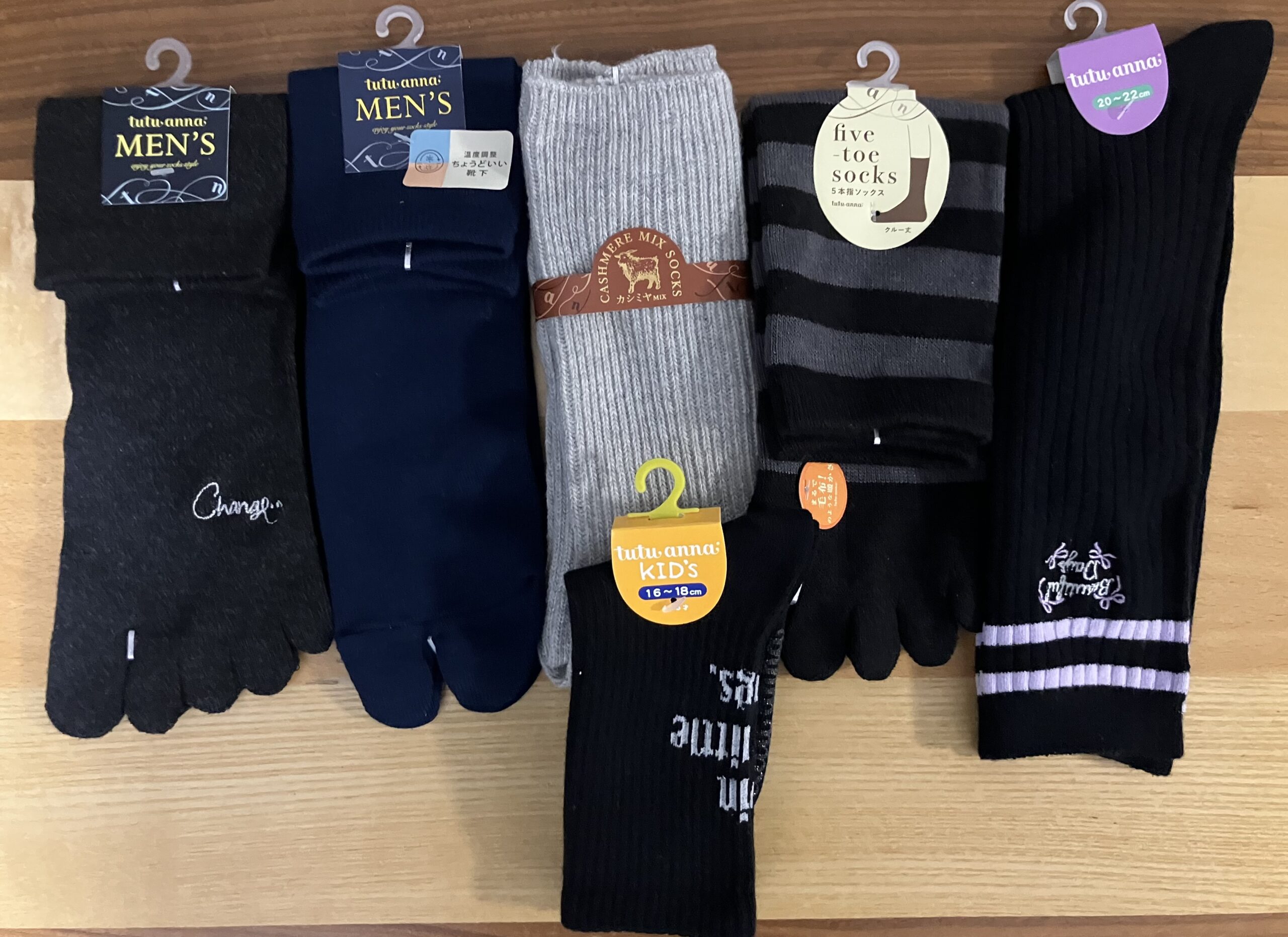 私はカシミア混のちょっと長めの靴下と5本指靴下。