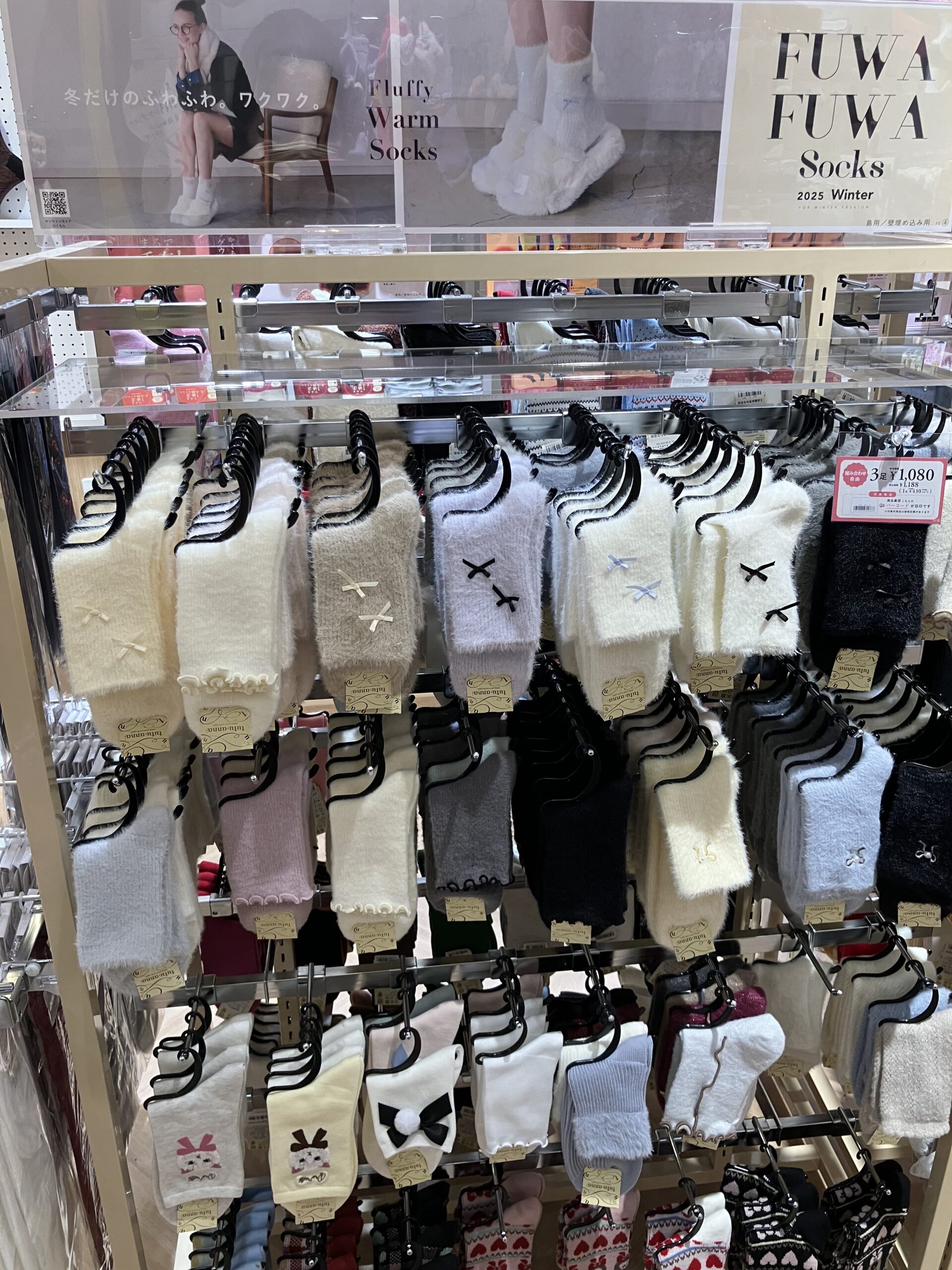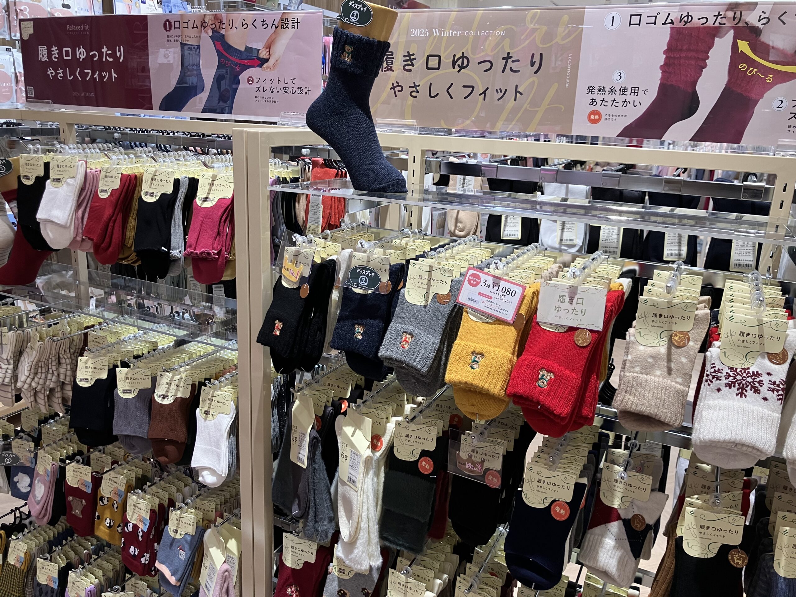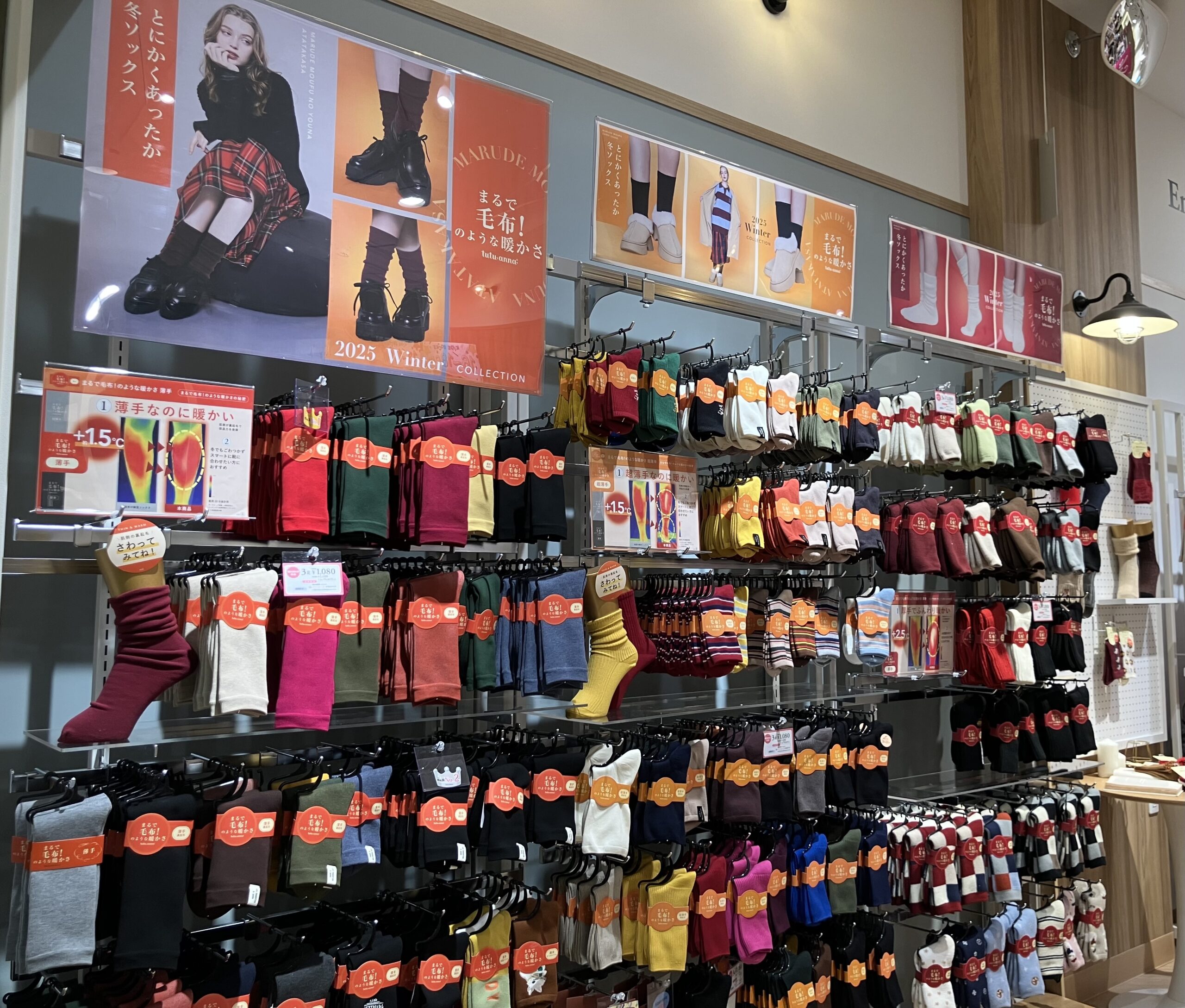 【まるで毛布!のような暖かさ】の靴下。超薄手から厚手のものまでいろいろ。レッグウォーマーやタイツもありました。