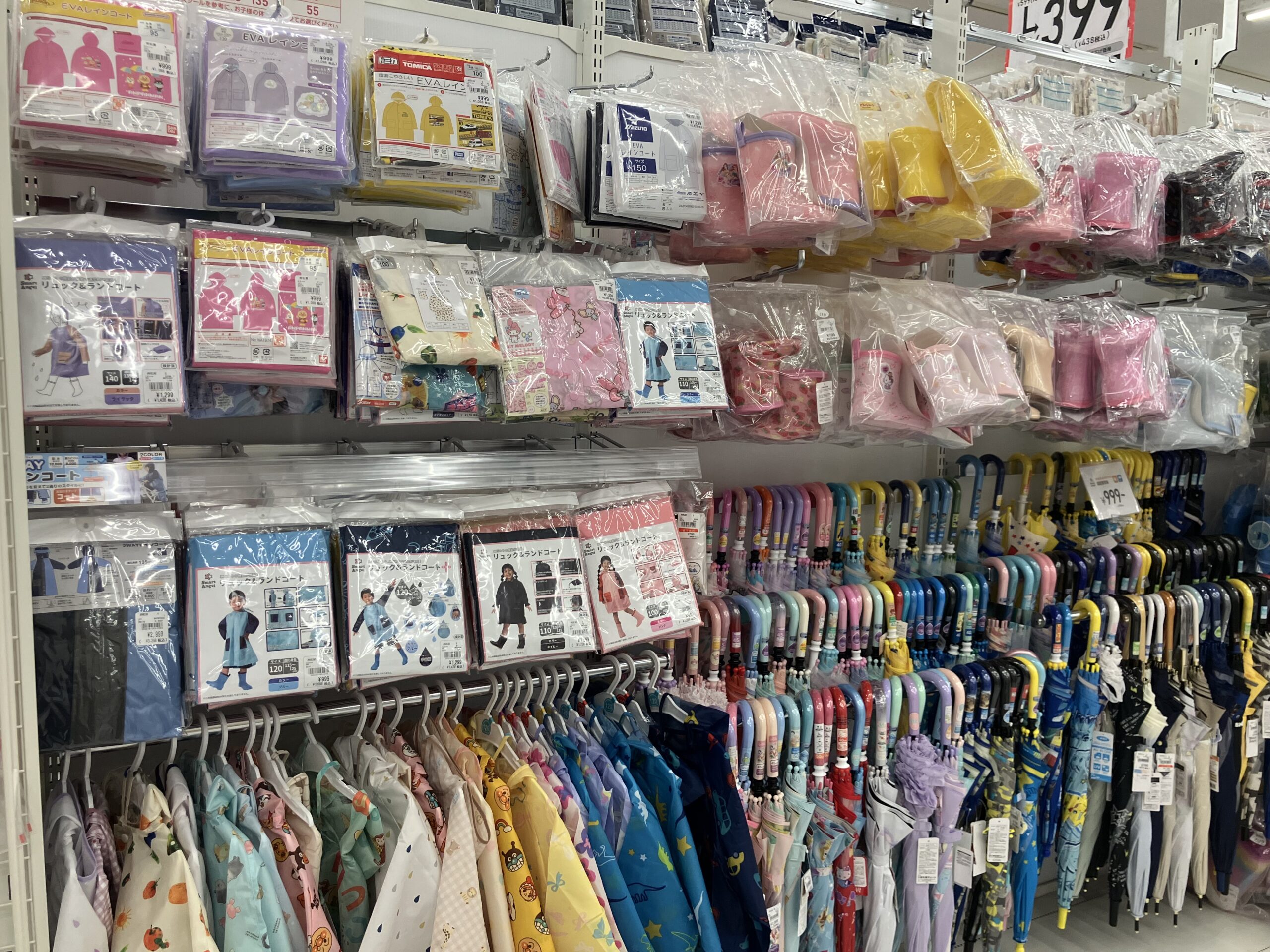 レインコートはランドセル・リュック対応のものがありました。傘も買わないと今のじゃ小さいかな・・必要な物がどんどん増えていきます。お店に来てみてよかった!そして西松屋の子育て応援価格、ほんとに助かります